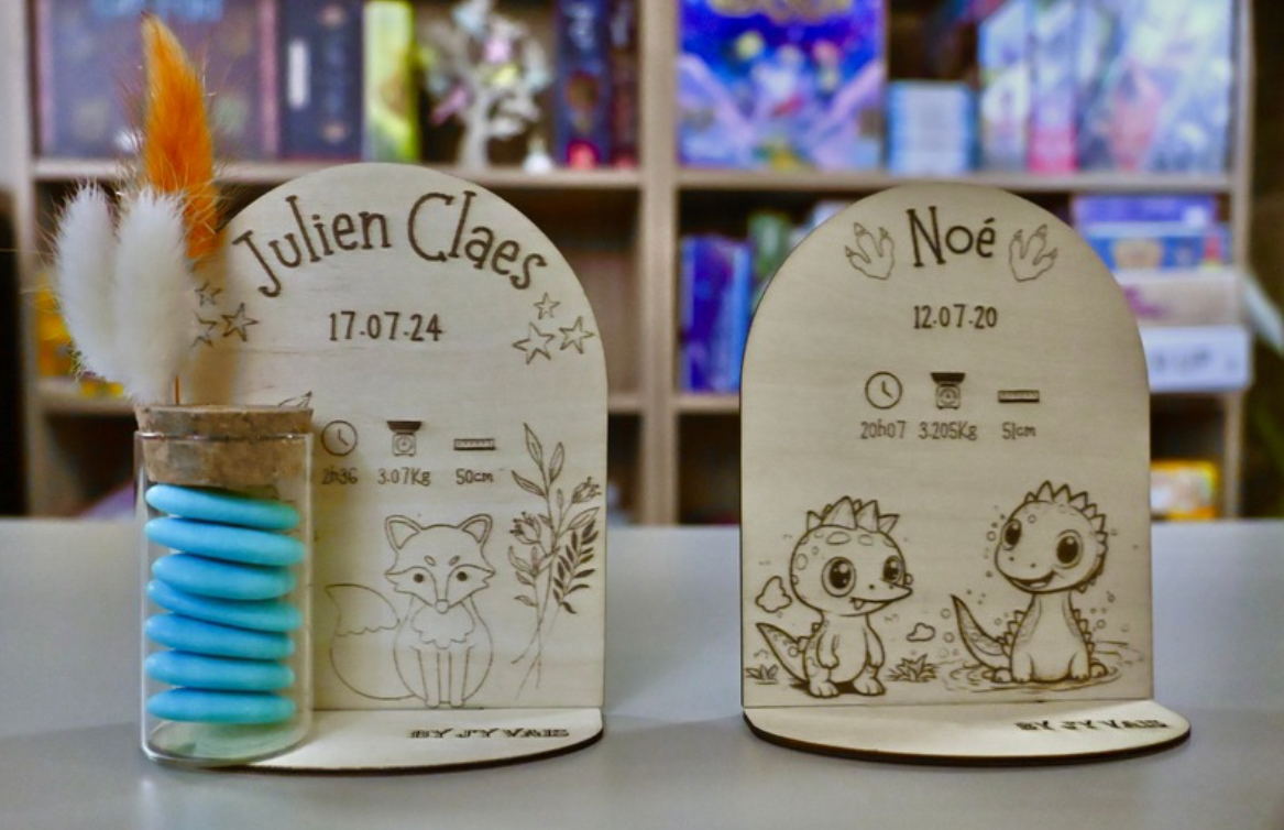 Offrez un souvenir unique pour célébrer une naissance avec nos créations gravées sur bois. Chaque pièce est personnalisée avec soin (prénom, date, motifs doux…) pour un cadeau authentique et intemporel, pensé pour émouvoir les parents et accompagner bébé dans ses premiers souvenirs.