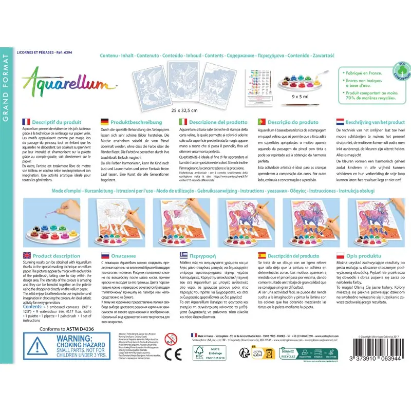 Découvrez Aquarellum, une gamme innovante de coffrets créatifs permettant à tous, petits et grands, de réaliser de magnifiques tableaux en aquarelle, sans risque de débordement ni besoin de connaissances techniques. Grâce à la technique unique du papier vélin serti, les motifs apparaissent comme par magie au fil de la peinture, garantissant un résultat toujours éclatant et harmonieux.