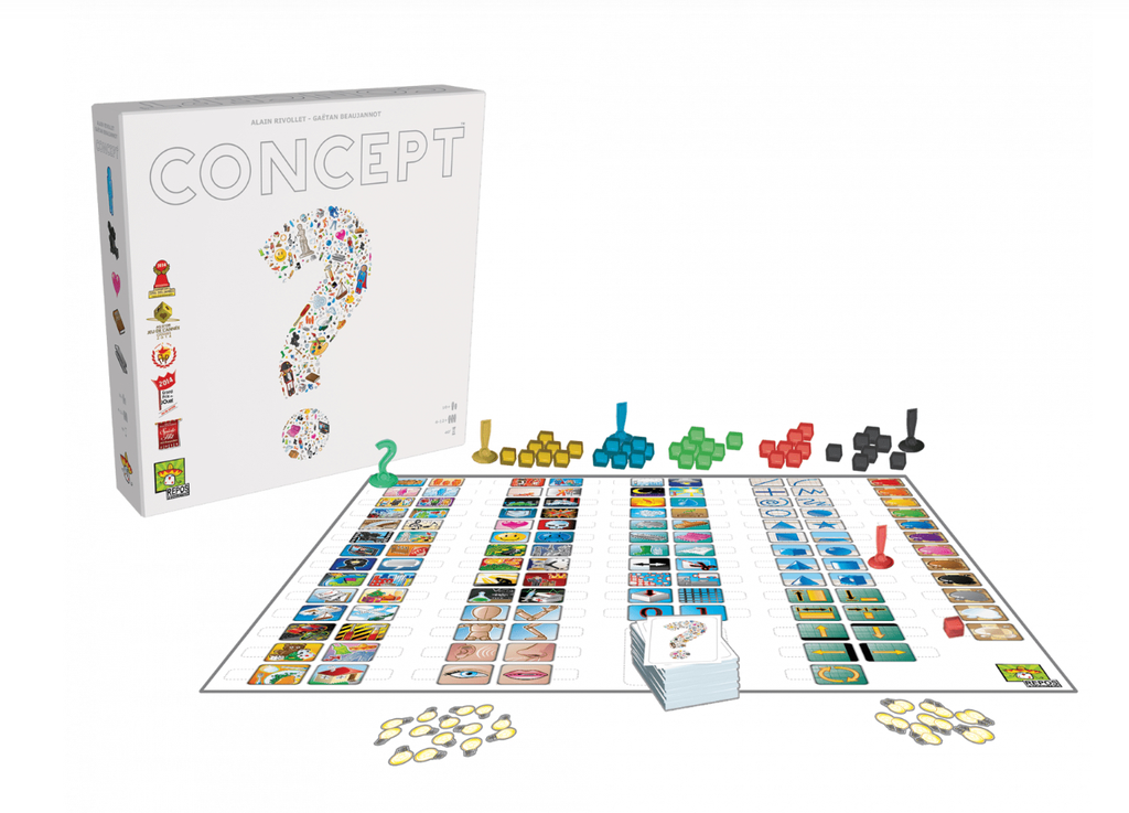 Dans Concept, vous disposez d'un plateau de jeu avec des pictogrammes représentant diverses catégories comme des objets, des émotions, des actions, etc. L'idée est de combiner ces pictogrammes de manière stratégique pour transmettre le bon concept sans utiliser un mot ou un geste. Le jeu met à l'épreuve vos capacités de déduction, et chaque partie devient un véritable défi mental.